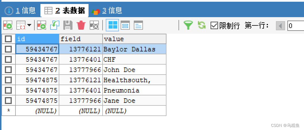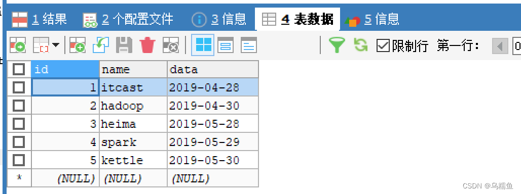 通过SQLyog工具,查看数据表xml是否已成功插入6条数据。