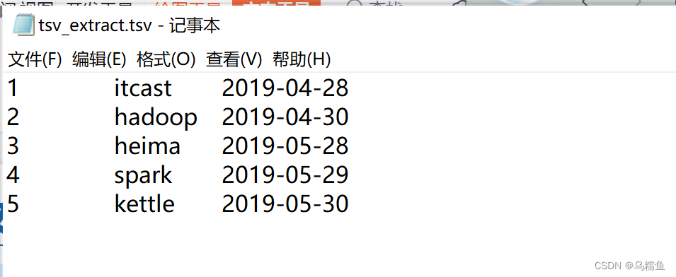 1.数据准备:现有一个名为tsv_extract.tsv的TSV文件,该文件的内容如图所示。