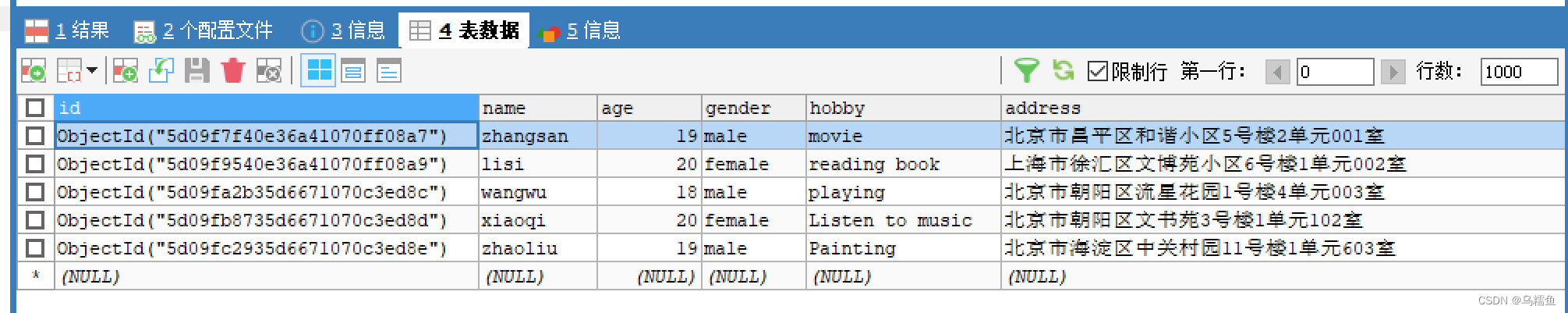 1.数据准备:现有一个集合名为Personal information,如图所示。