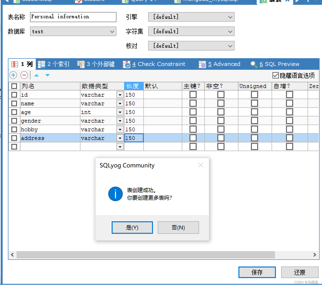 通过使用SQLyog工具,查看数据表Personal information是否已成功插入5条数据,如图所示。