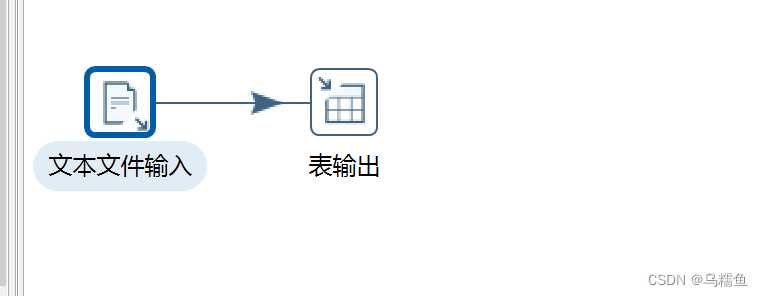 2. 通过使用Kettle工具,创建一个转换tsv_extract,添加“文本文件输入”控件、“表输出”控件以及Hop跳连接线,具体如图所示。