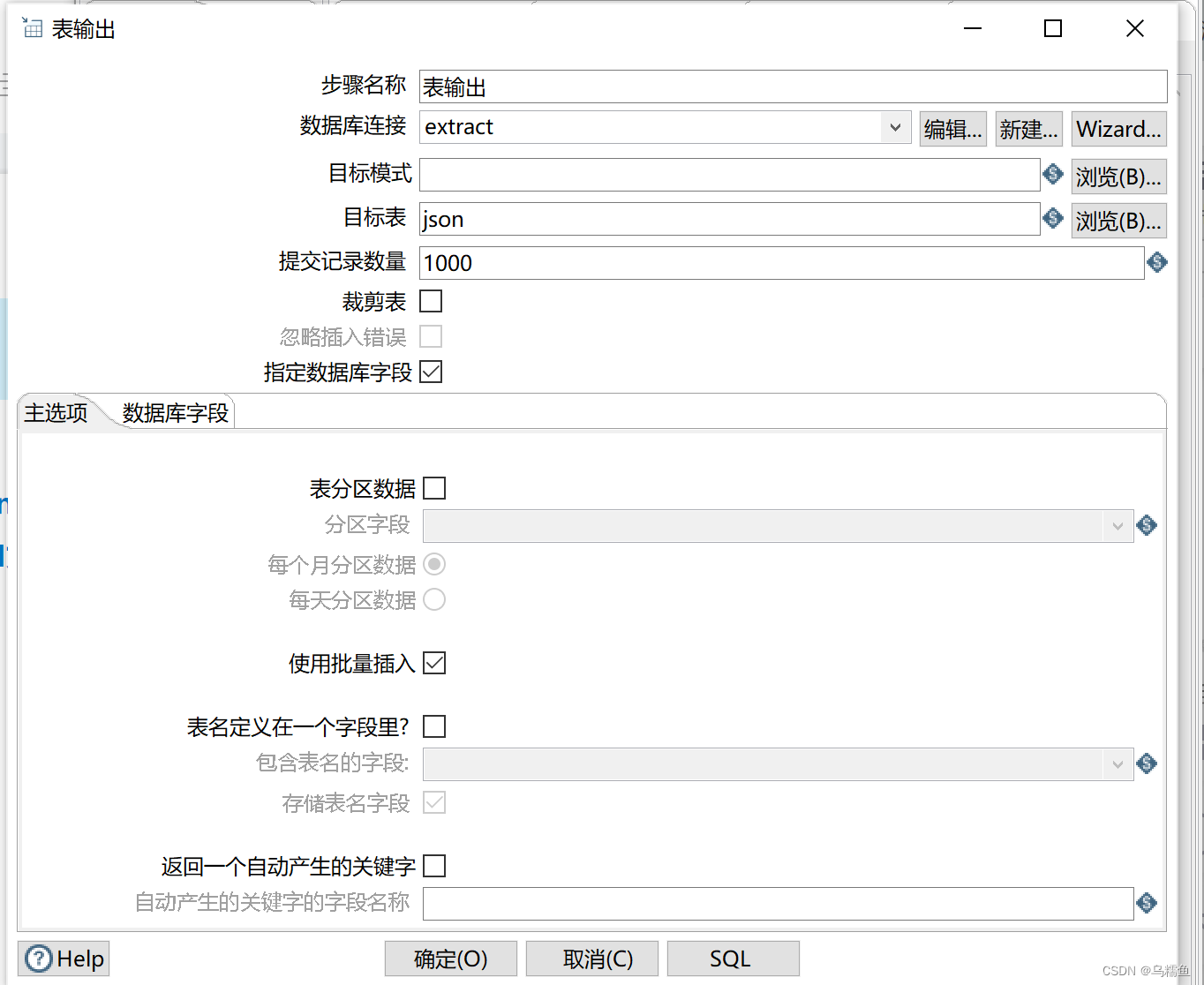 勾选“指定数据库字段”的复选框,用于将数据表json的字段与JSON文件json_extract.json中的字段进行匹配。