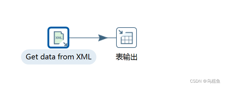 通过使用Kettle工具,创建一个转换转换xml_extract,并添加“Get data from XML”控件、“表输出”控件以及Hop跳连接线,具体如图所示。