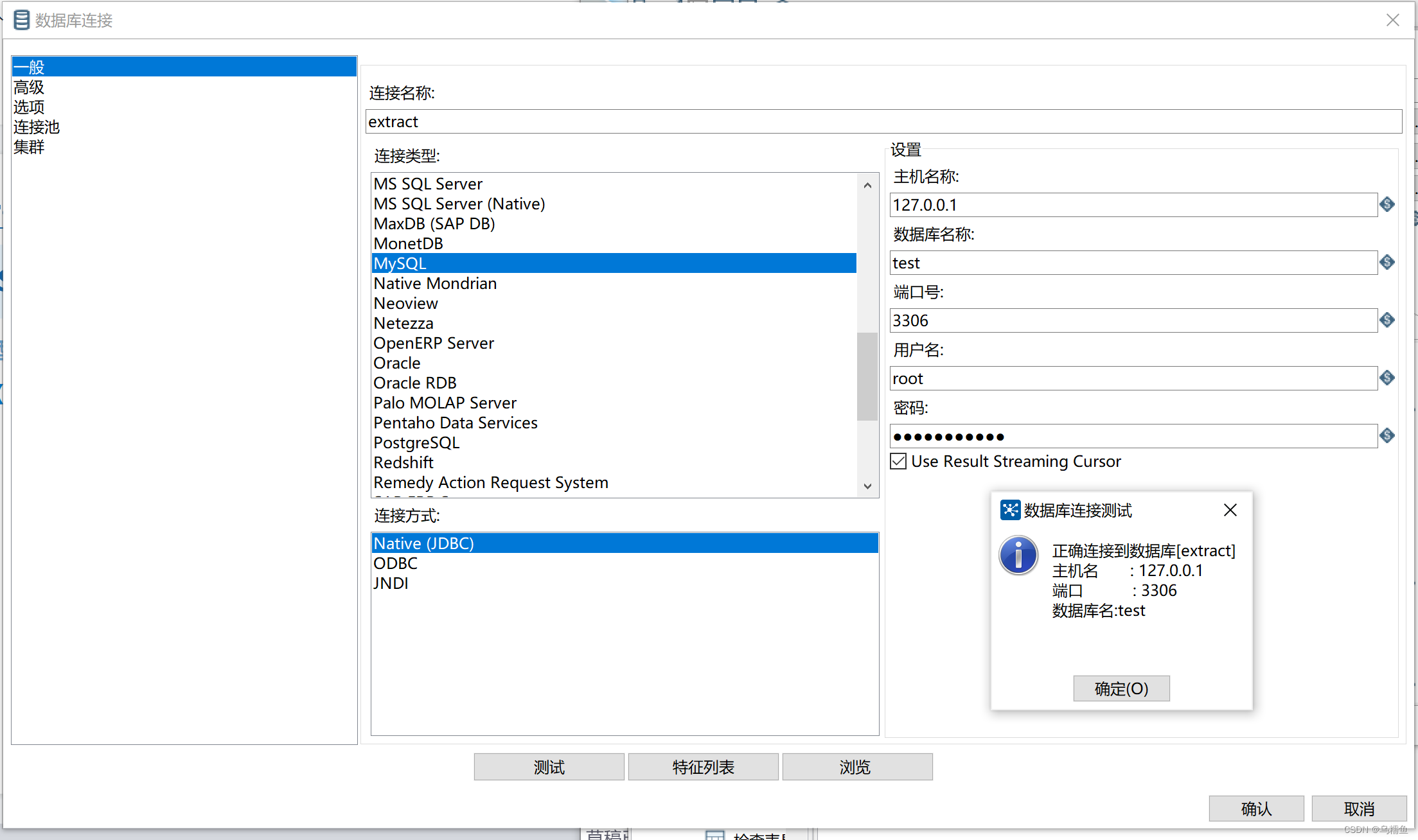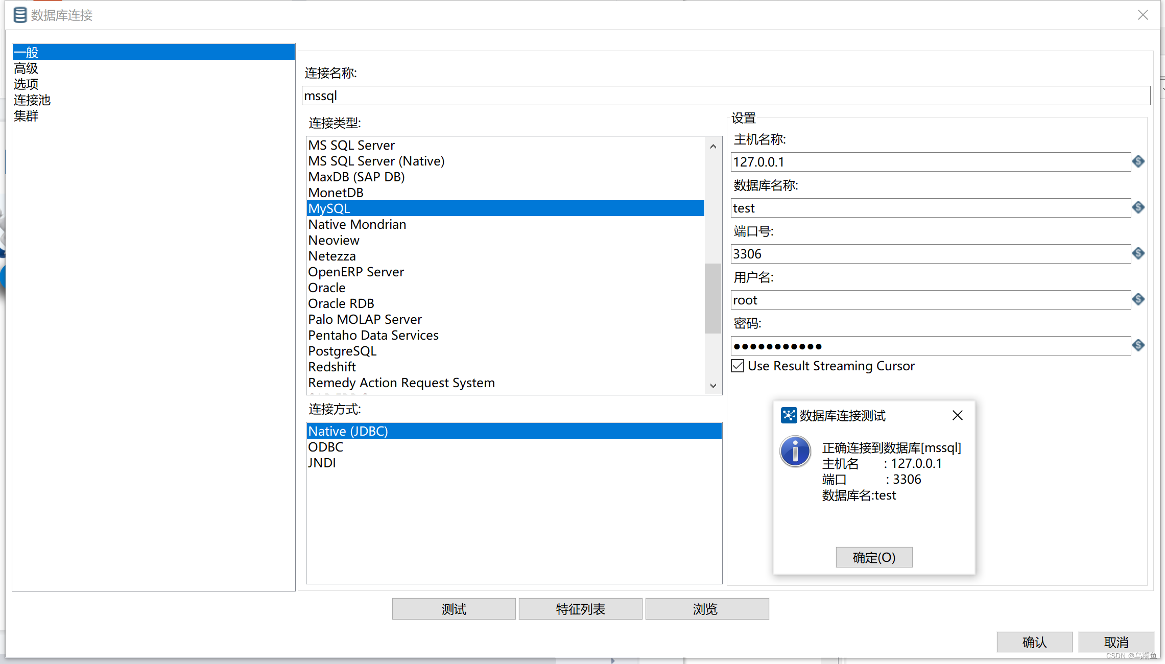 双击“表输入”控件,进入“表输入”配置界面” 。单击【新建】按钮,配置数据库连接,配置完成后单击【确认】按钮。