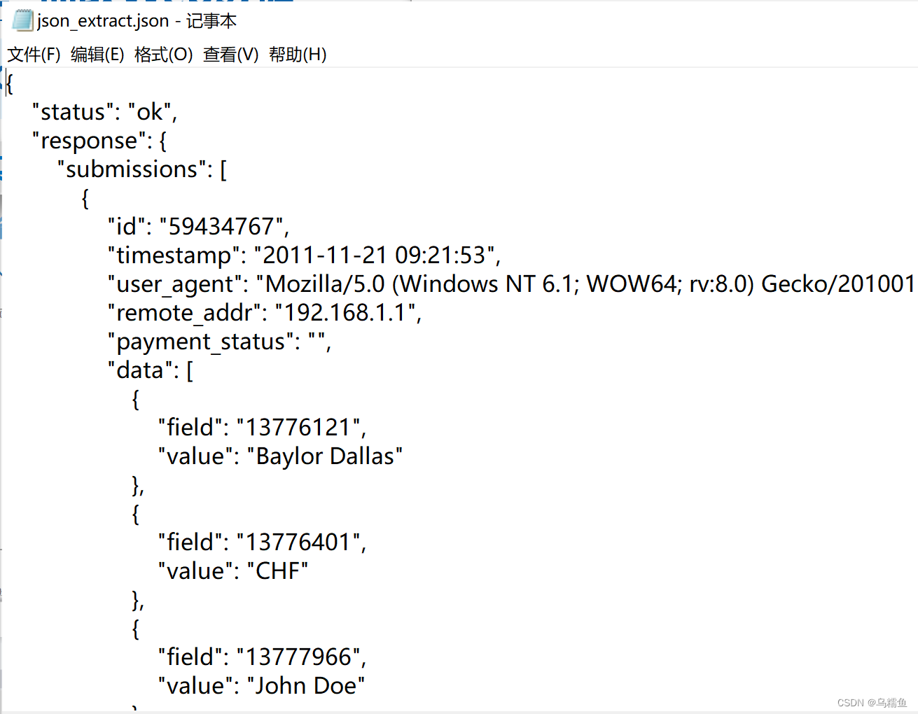 现有一个JSON文件名为json_extract.json,部分内容如图所示。