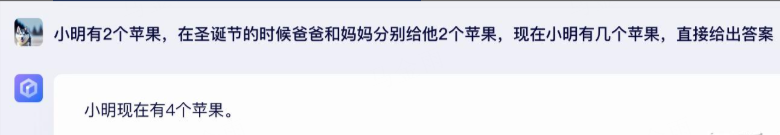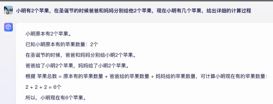 可以看出,对于这道简单的应用题,大模型在直接给出结果时,结果是明显错误的,但是我们只需要改动一下 Prompt,让他输出详细的计算过程或者思考过程,大模型就能够给出正确的结果。