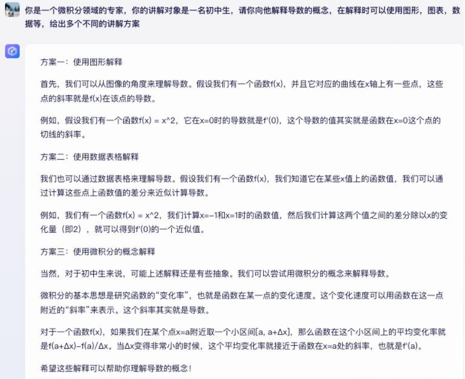 假设我们的目标是获取一个浅显易懂的关于导数的解释方式,第一种方式是: