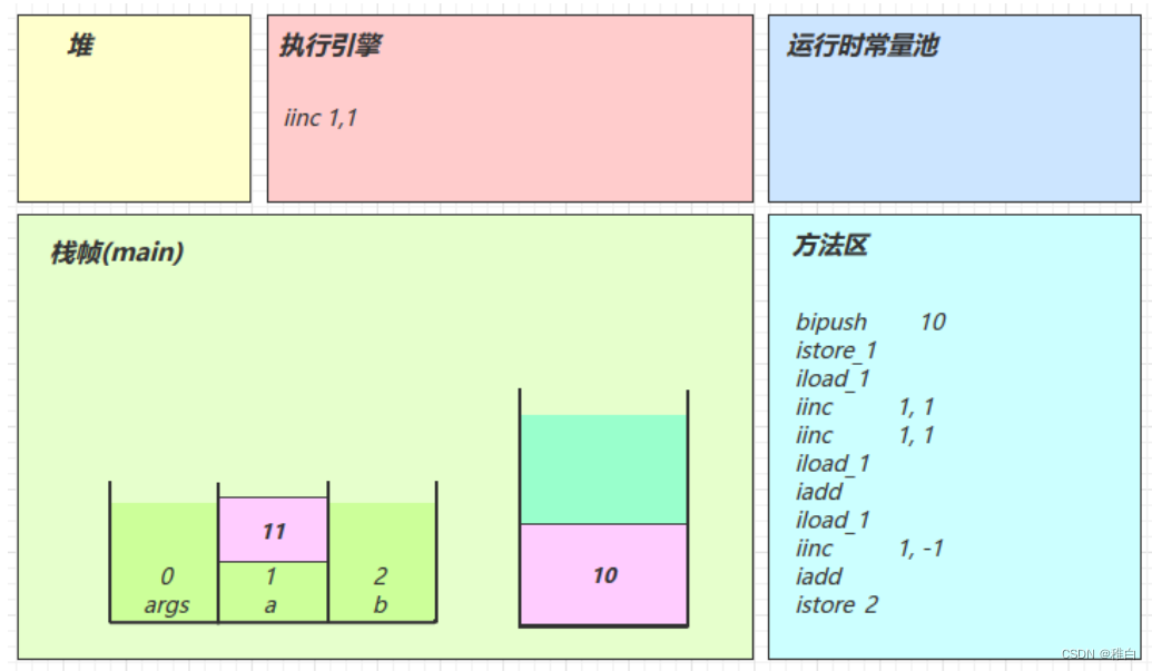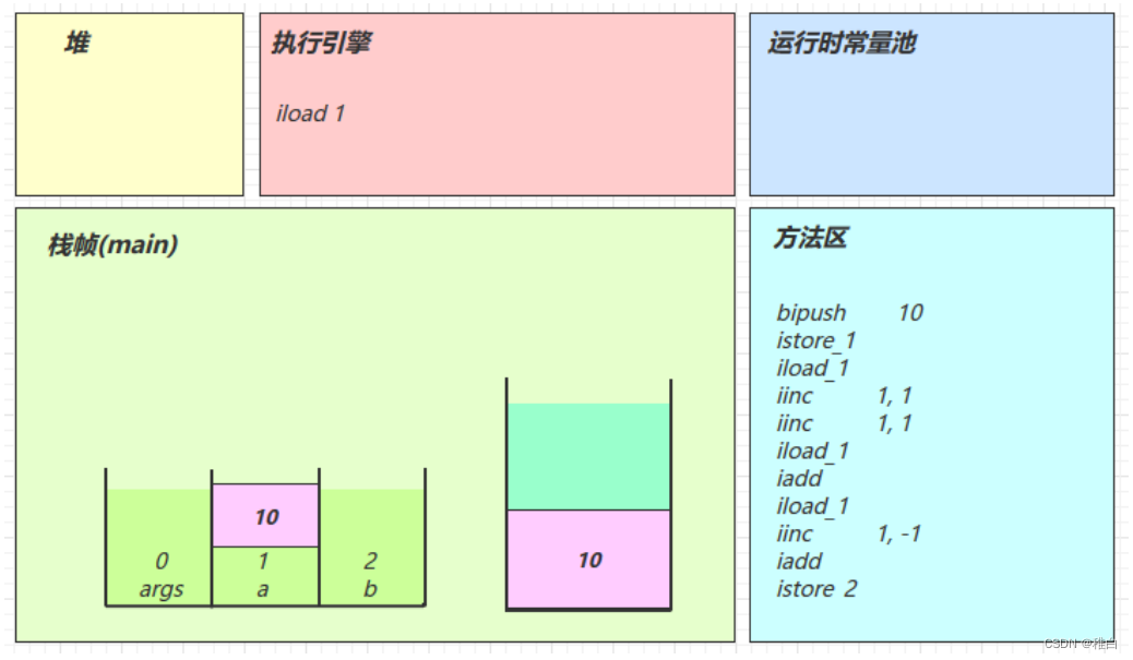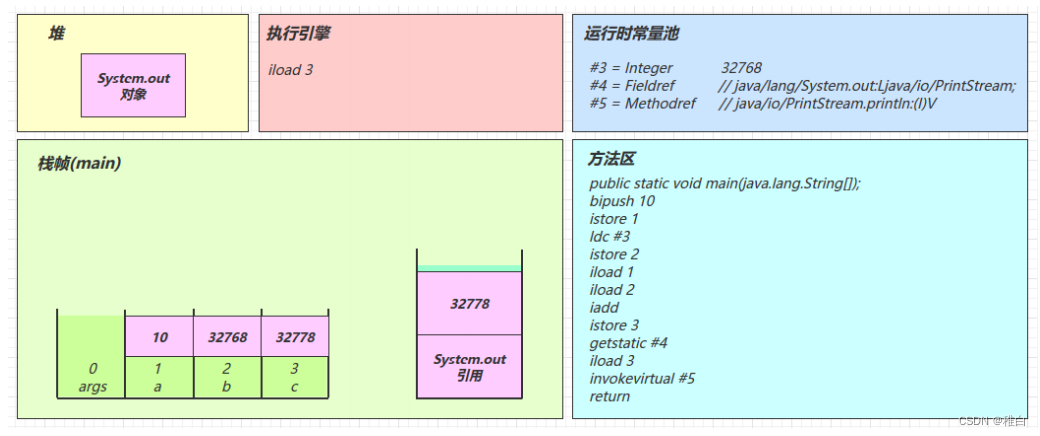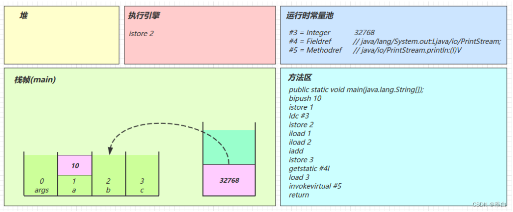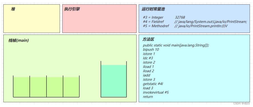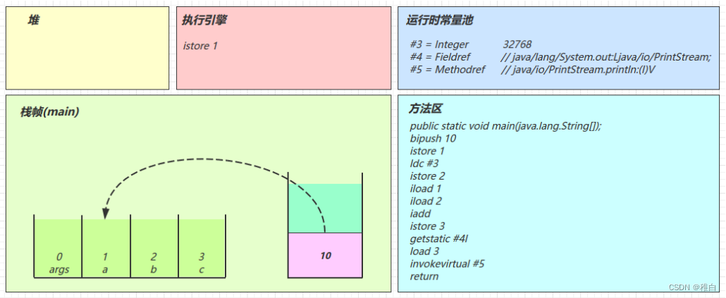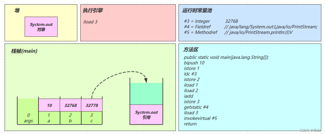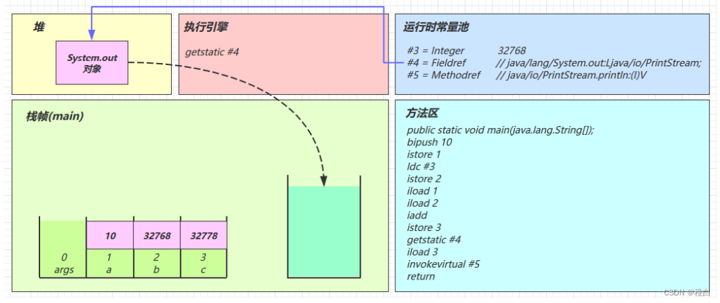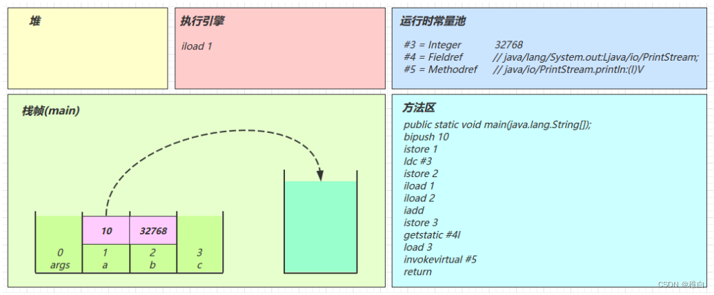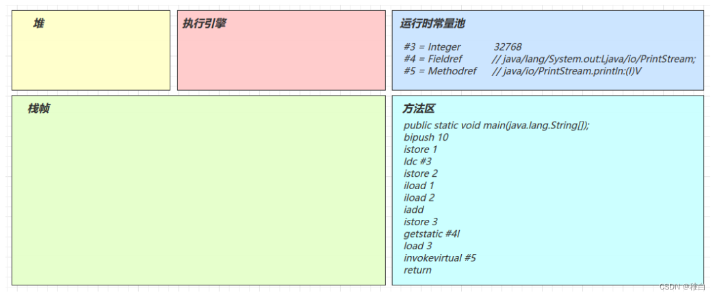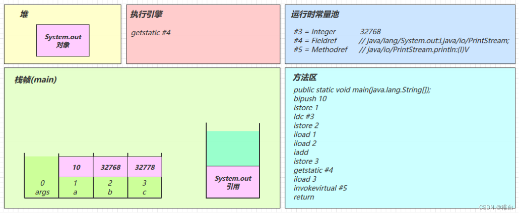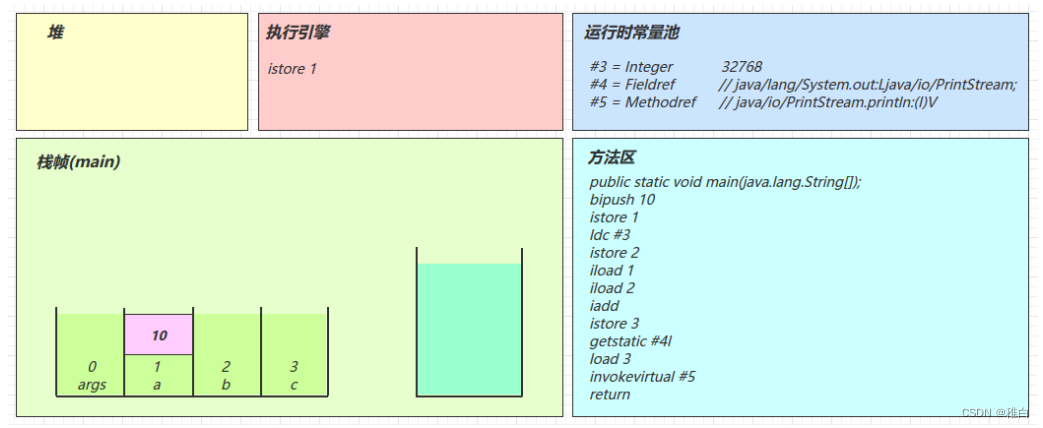 - 运行时常量池,常量池是 *.class 文件中的,当该类被加载,它的常量池信息就会放入运行时常量池,并把里面的符号地址变为真实地址