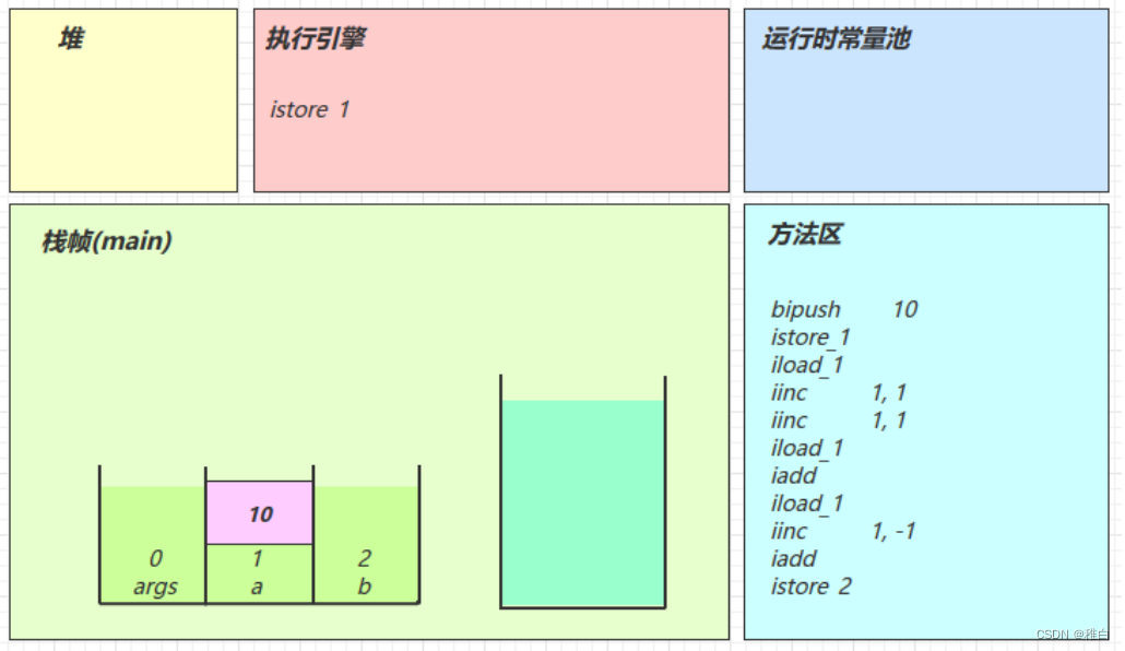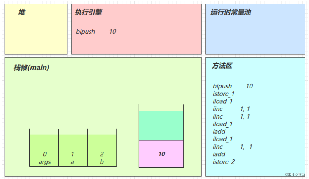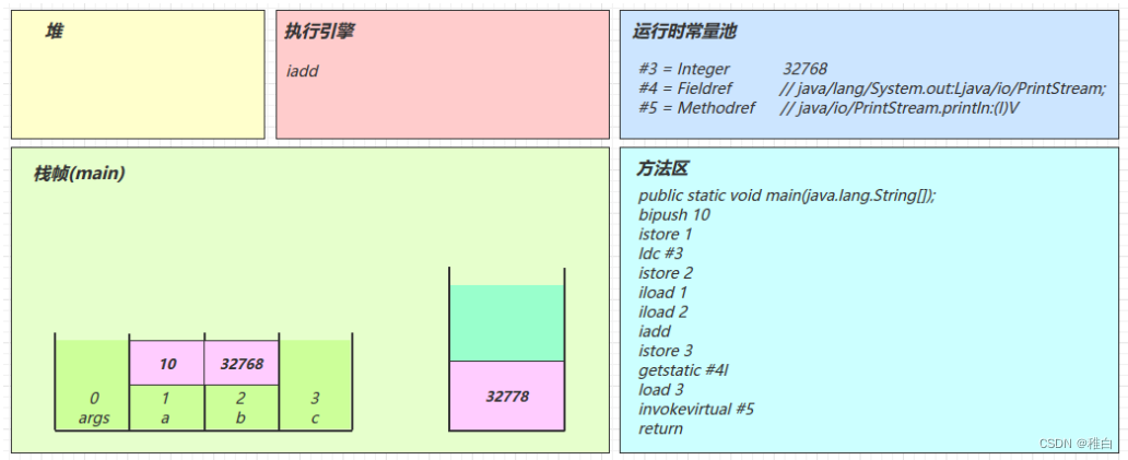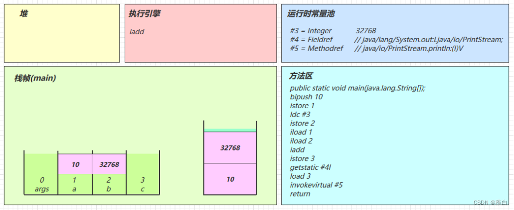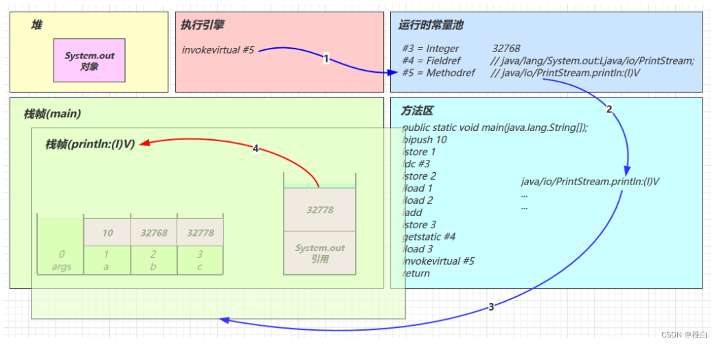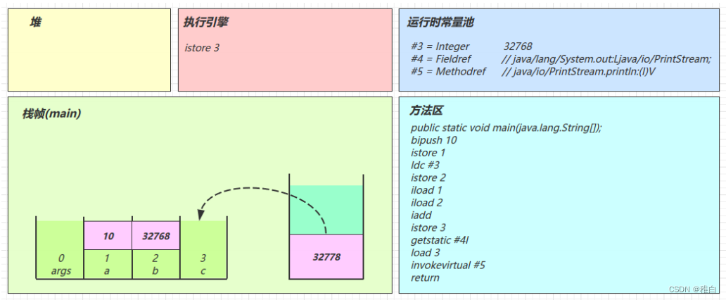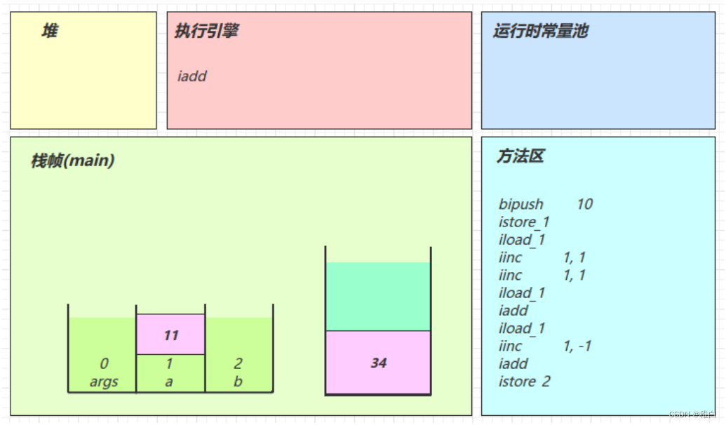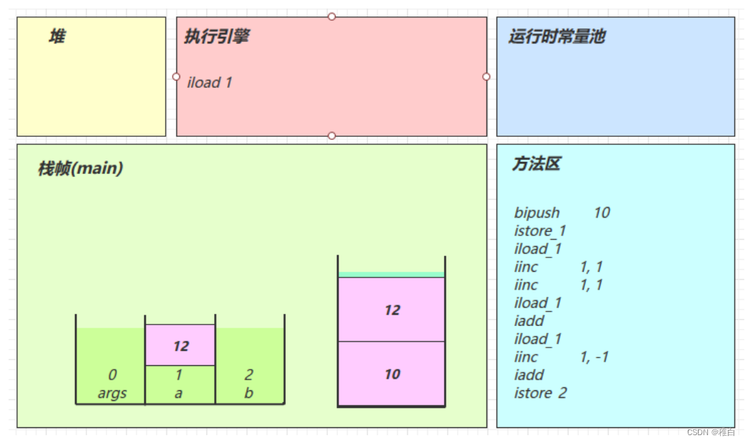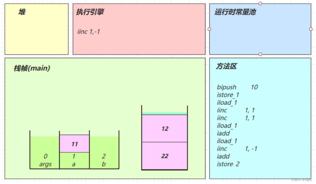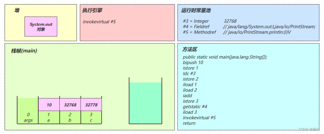 - 运行时常量池,常量池是 *.class 文件中的,当该类被加载,它的常量池信息就会放入运行时常量池,并把里面的符号地址变为真实地址