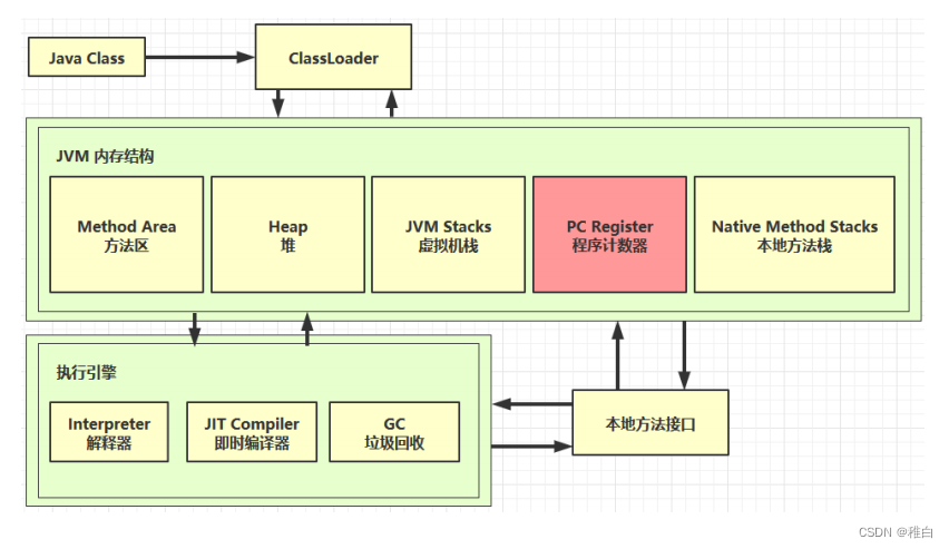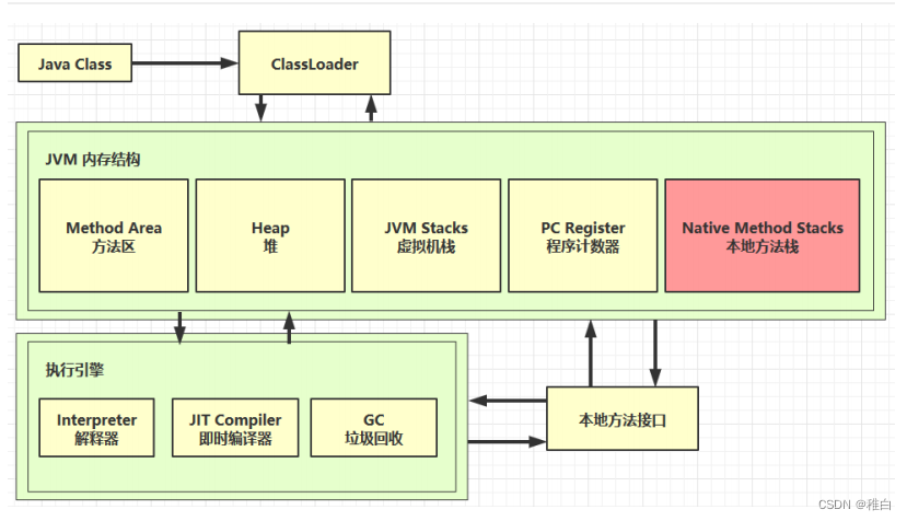 本地方法栈(Native Method Stack)是Java虚拟机(JVM)中的一部分内存区域,用于管理调用本地方法(Native Method)的过程。本地方法栈的大小通常较小,因为本地方法的调用通常不会消耗大量的栈空间。本地方法是指由本地(非Java)语言编写的方法,通常使用JNI(Java Native Interface)来与Java代码进行交互。