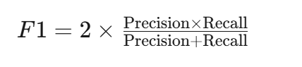 F1公式是精确率(Precision)和召回率(Recall)的调和平均值,用于评估模型的综合性能,特别是在类别不平衡的情况下。