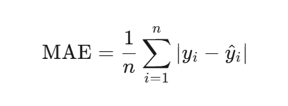 平均绝对误差(MAE):计算每一个样本的预测值和真实值的差的绝对值再取平均,提供了模型预测误差的平均大小,对所有误差一视同仁。