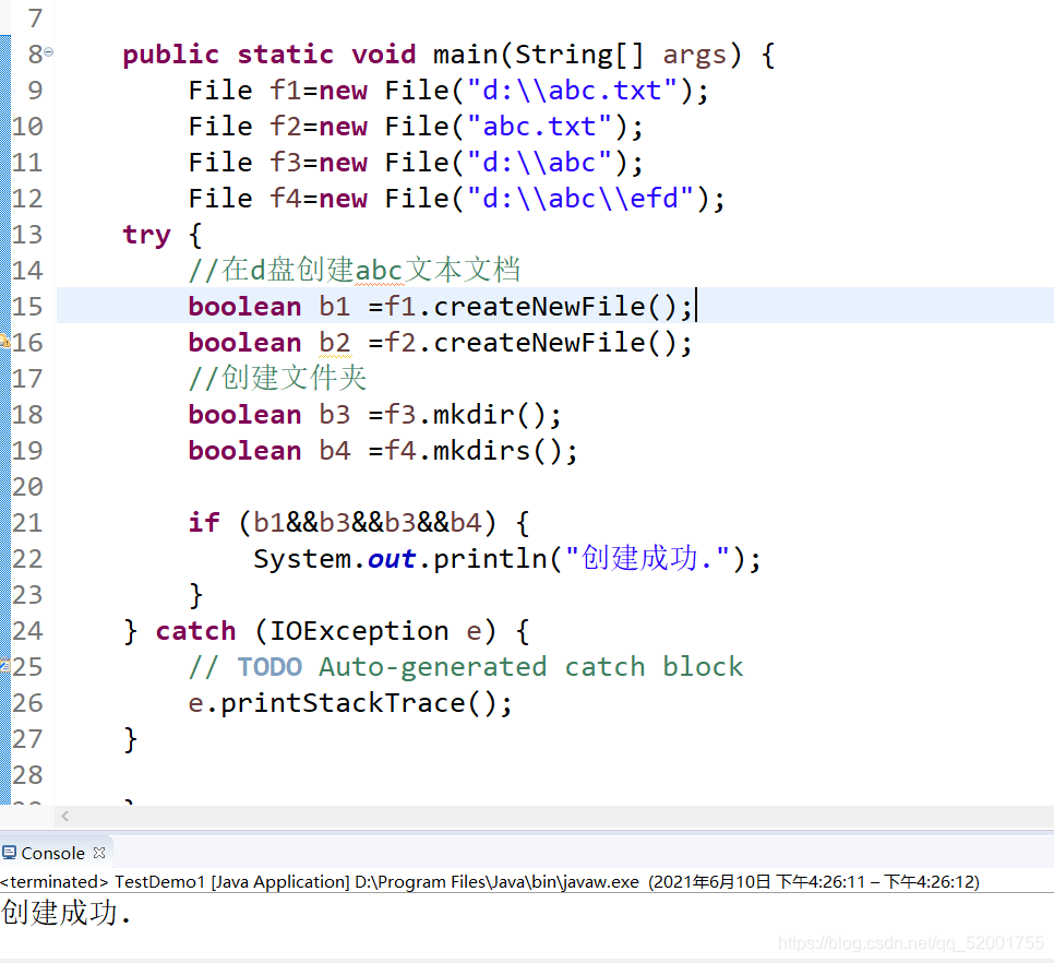 mkdir( )方法创建一个文件夹,成功则返回true,失败则返回false。失败表明File对象指定的路径已经存在,或者由于整个路径还不存在,该文件夹不能被创建。