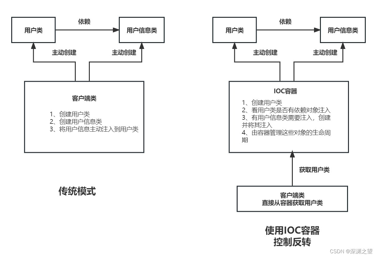 而IOC是由专门一个容器来创建对象,即由IOC容器来控制对象的创建。