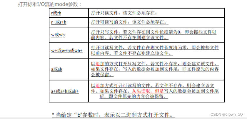 mode:打开文件的模式。“+”:可读写,除了“a”以外都是从头开始写。
