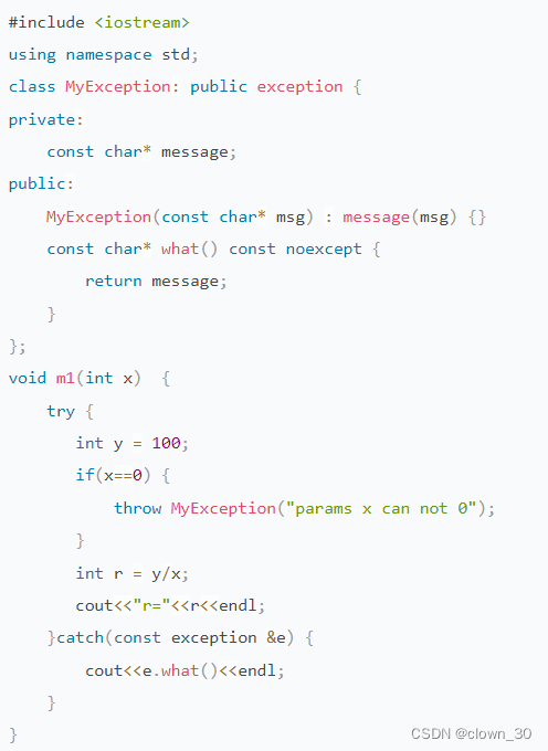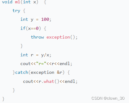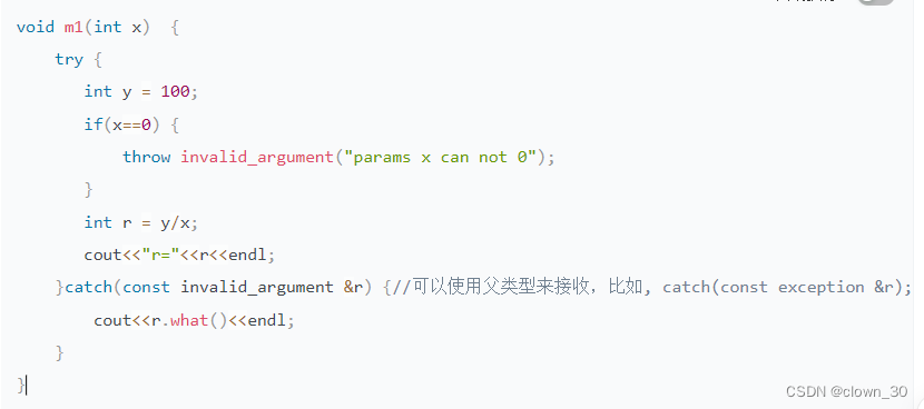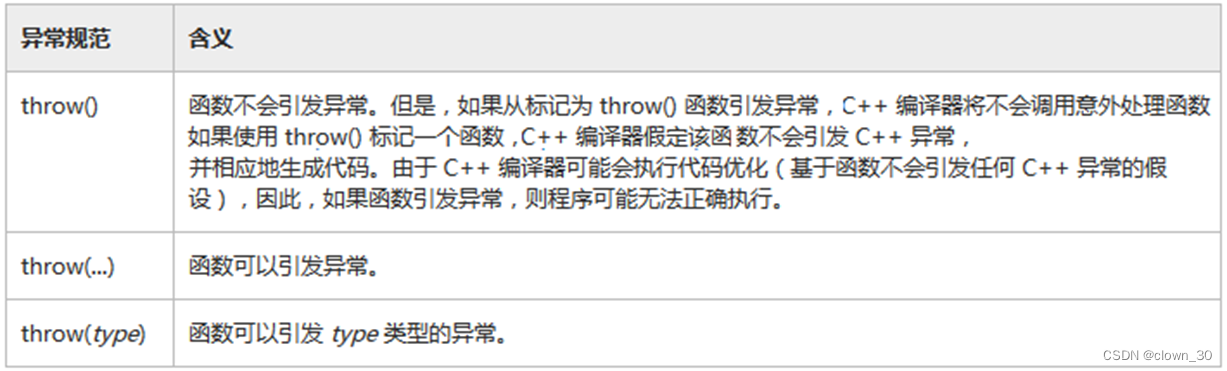 如果函数抛出throw()则表示不能抛出异常,该方式现在已经建议使用(11版本开始) const noexcept代替,就像前面使用const char* what() const noexcept , 表示不能抛出异常。
