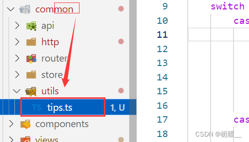首先是 封装的toast 文件(作用就是提示信息)创建utils文件夹(tips.ts文件)//取什么名字都行