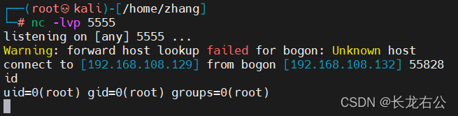 nc -lvp 5555 #采用nc实现端口监听,端口是设置jar木马文件时的端口