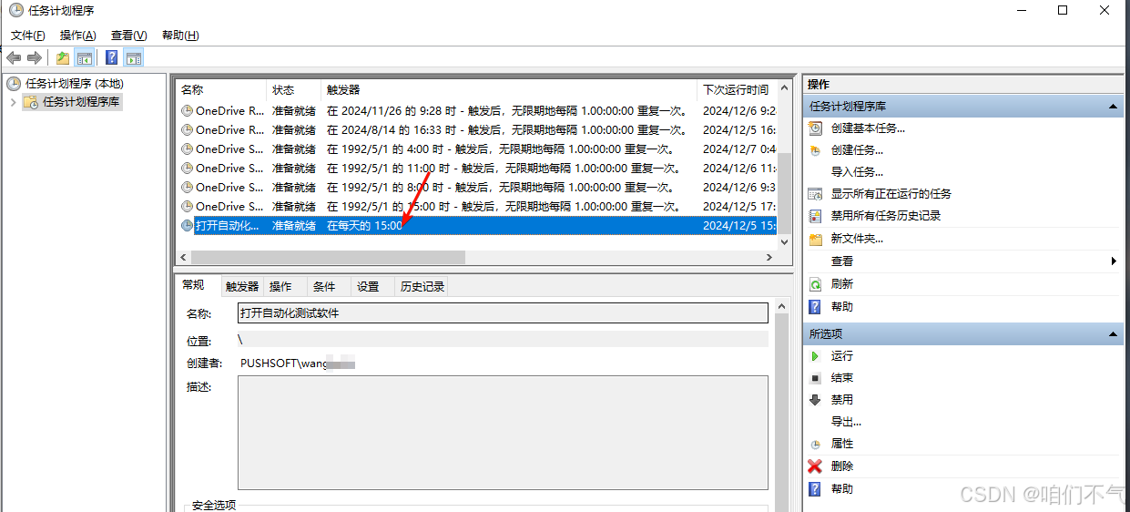 - 点击任务库(Task Scheduler Library),在中间面板查看任务列表及状态。