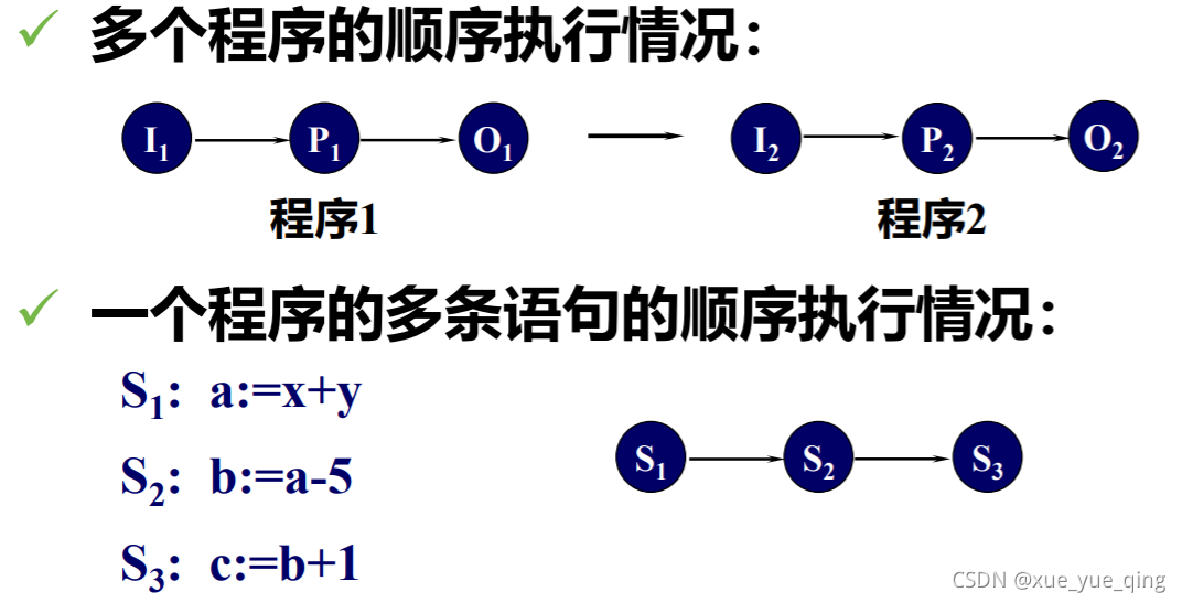 - 顺序性:一个程序开始执行必须要等到前 一个程序已执行完成。