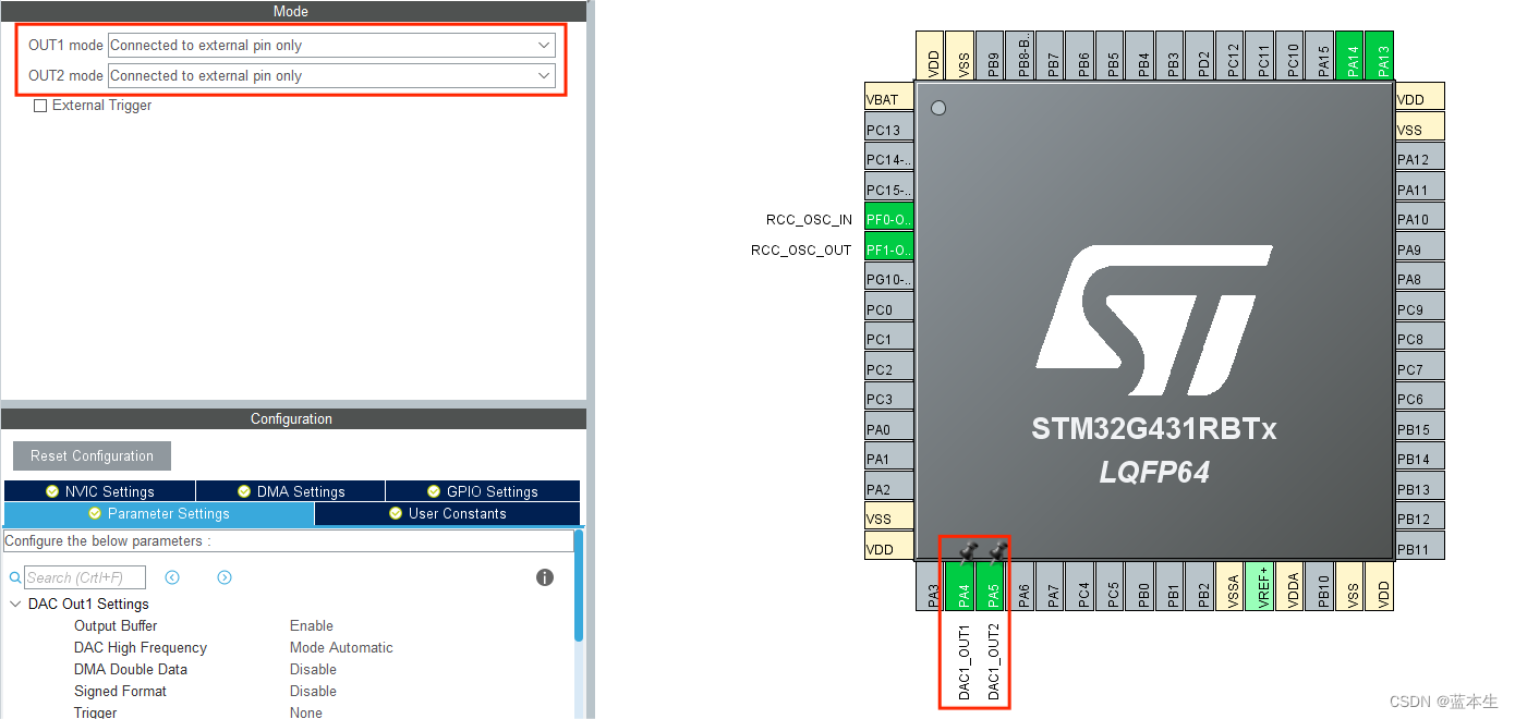 蓝桥杯嵌入式板子的DAC模块是12位电压输出模数转换器,可配置为8或12位,两路输出通道