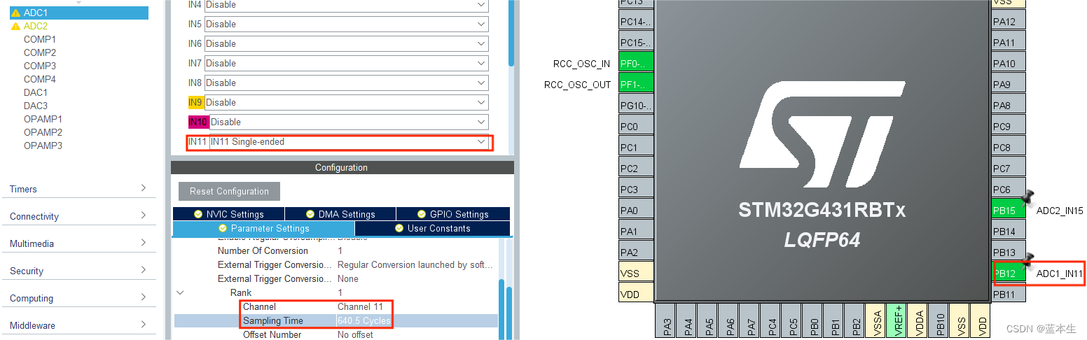 蓝桥杯嵌入式板子上有两个12位的ADC转换器,每一个ADC具有19个多路复用通道,结果存储在16位寄存器中 (因此16位多4位存在左对齐还是右对齐,DAC也是)