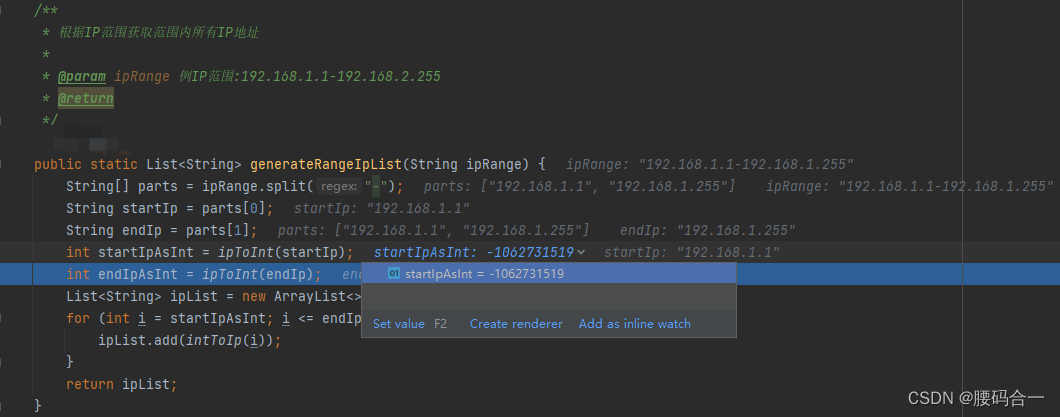 运行ipToInt方法并传入IP地址"192.168.1.1"时,您实际上是在处理一个32位的无符号整数。然而,在Java中,int类型是一个有符号的32位整数,其值的范围是-2,147,483,648到2,147,483,647。