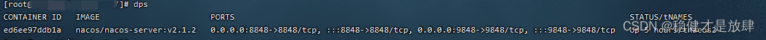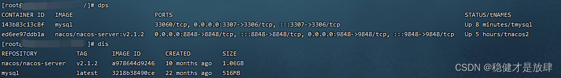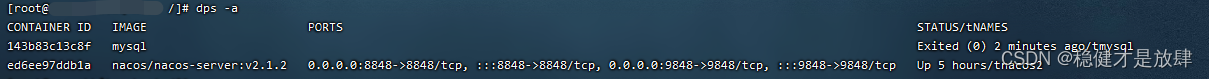 (发现只剩nacos2了,mysql不见了,当然这只是查看正在活跃的容器)