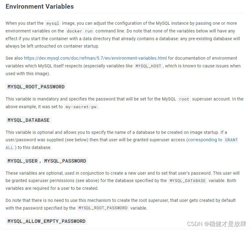 这是设置对应的环境变量,比如我这里就是设置了容器的时区,为了和主机同步,我们选择亚洲上海,也就是东八区;除此之外,还设置了Mysql的密码,这些信息都可以从DockerHub中查看。
