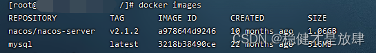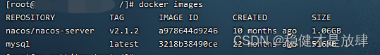 可以通过指令 docker images 查看当前本地镜像库有什么,这里我们看到mysql已经在里面了