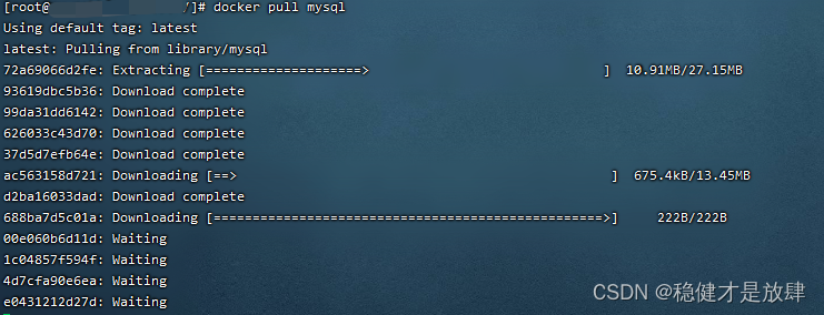 通过Docker pull(可以先去搞个阿里云的镜像加速服务,拉取会更快) 指令,如果不指定版本啥的,默认拉取最新版本
