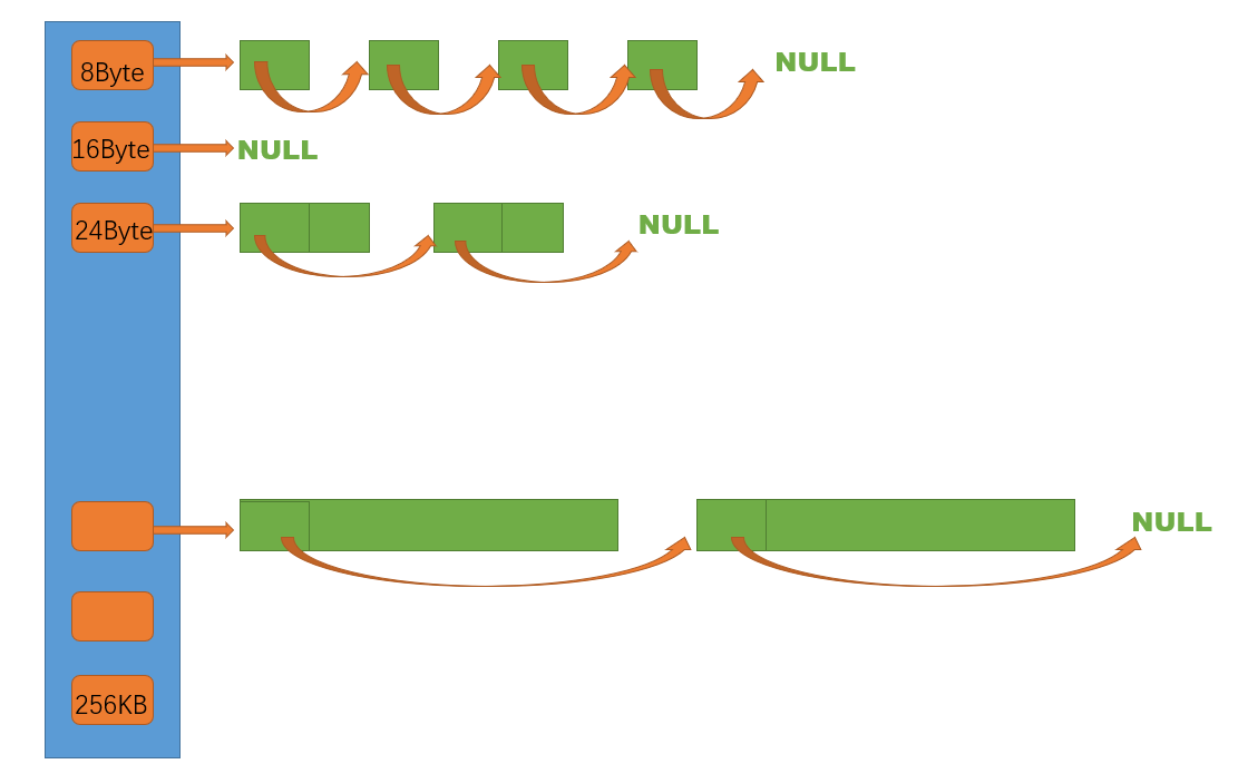 如果我们为每个大小 都设置一个内存块的话 就是 8~256*1024个桶