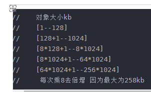 解释:这里为啥size<=256KB 这里你可以随便设置,200 300 500都行 其实在大多数编程的时候你一次性申请的空间都很小,所以这里设置256kb(256*1024字节)已经满足大多数场景的使用。