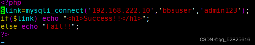 $link=mysqli_connect('192.168.80.10','bbsuser','admin123');
