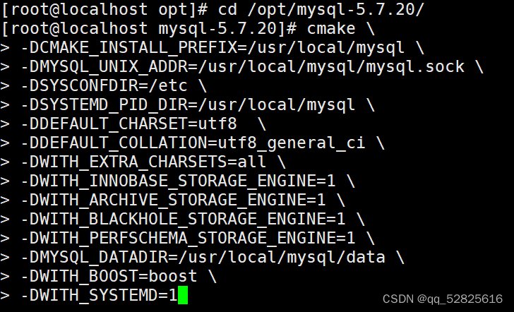 -DCMAKE_INSTALL_PREFIX=/usr/local/mysql \