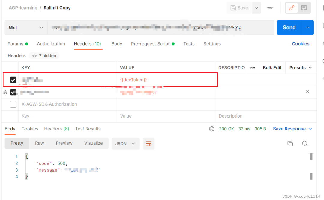 新建全局变量devToken,将第一步获得的token赋值给devToken,并在请求中带上devToken