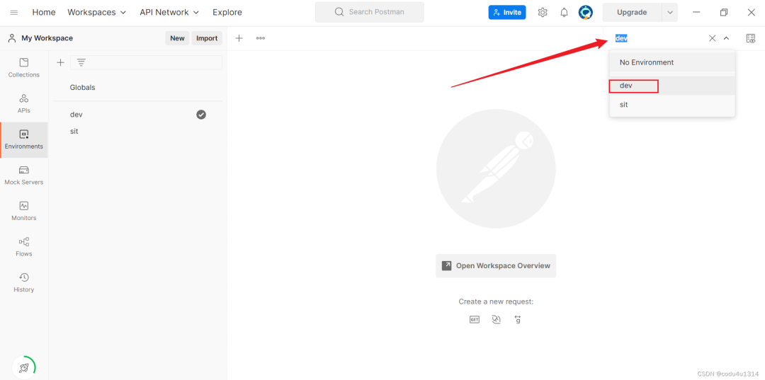 可以看到多了一个"new environment",这里我们将名字修改为dev;