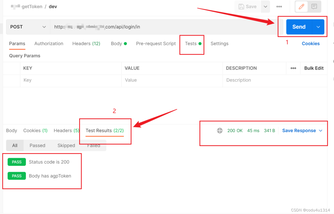 然后,我们send请求,再查看Test results区域,请求成功: