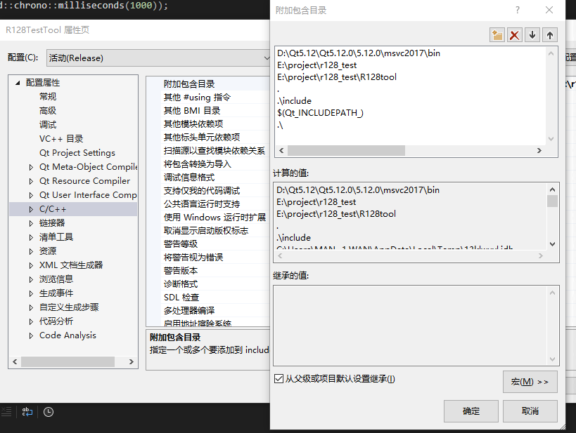 A2:在项目-》属性-》VC++-》包含目录中添加对应源文件的路径,如无法打开源文件QNetworkRequest,在QT安装路径D:\Qt\Qt5.12.0\5.12.0\msvc2017\include中查找QNetworkRequest所在路径,该源文件在D:\Qt\Qt5.12.0\5.12.0\msvc2017\include\QtNetwork中,添加该路径即可。