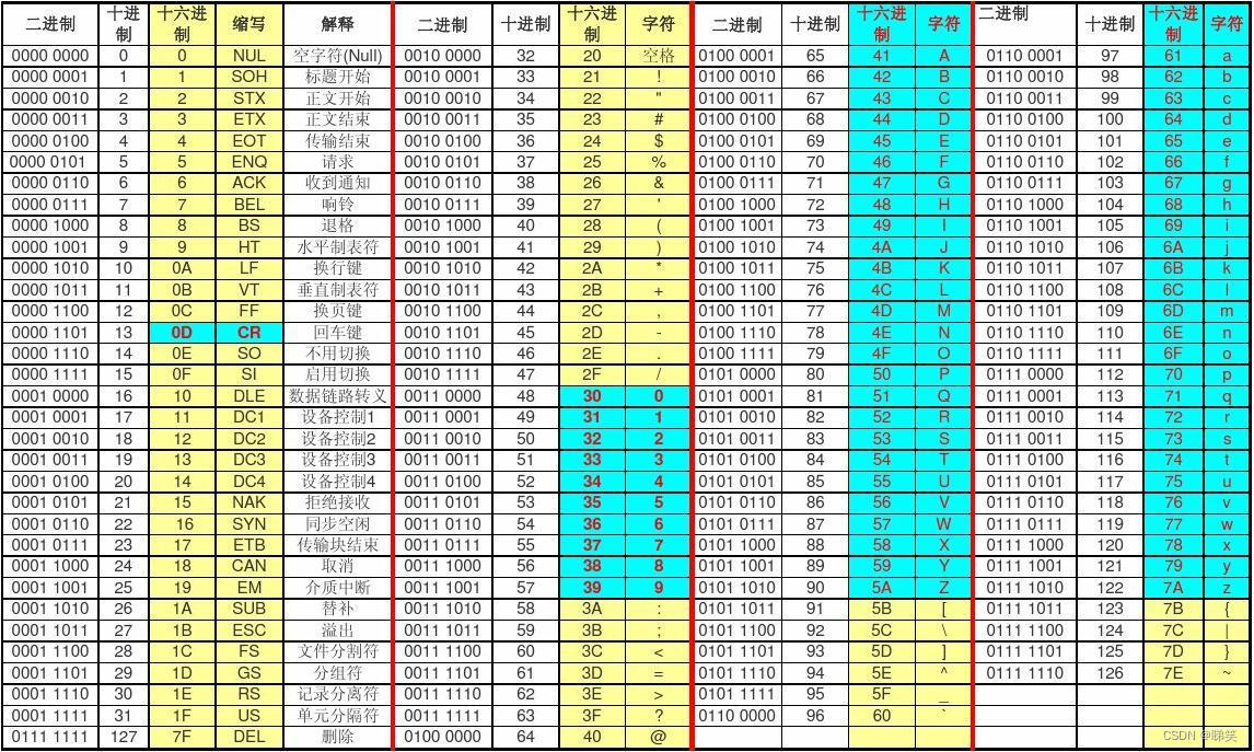计算机存储数据只能存数字(存的数字的补码),为了能够让计算机保存文字符号(字 符)让每一个符号对应的固定的数据,每次在需要存储这个符号的时候,就去保存这个符号 对应的数字。