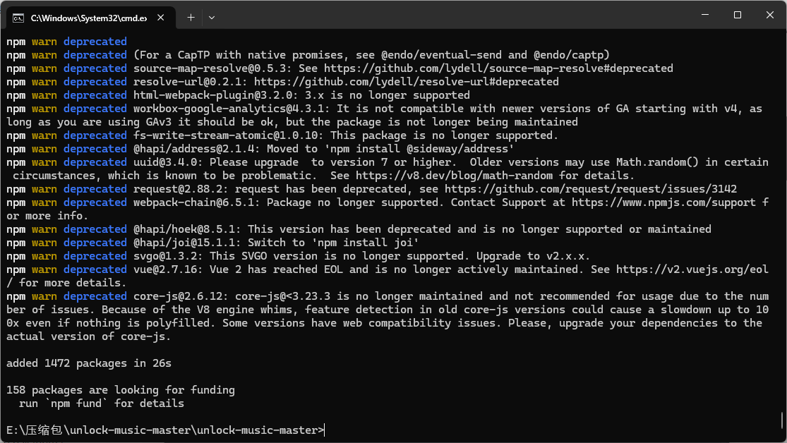 运行命令:sudo chown -R $USER:$USER ~/桌面/unlock-music-master