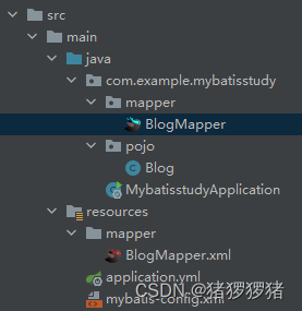 2. 在resource目录下,创建mybatis的配置文件mybatis-config.xml和映射文件目录mapper,之后的各类映射文件都放在里面