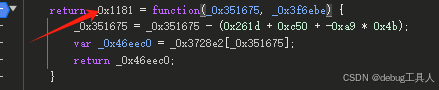 下面是这个函数的全部解密内容,现在第一行var的【_0x90ae75】函数已知为【_0x1181】如下
