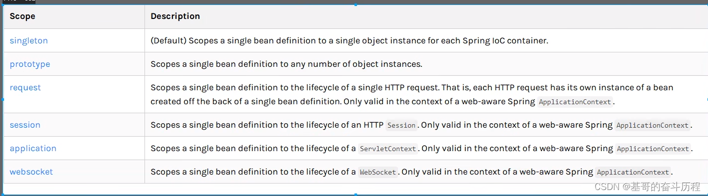 <bean id="user2" class="com.kuang.pojo.User" c:age="18" c:name="狂神" c:sponse-ref="user1" scope="prototype"/>