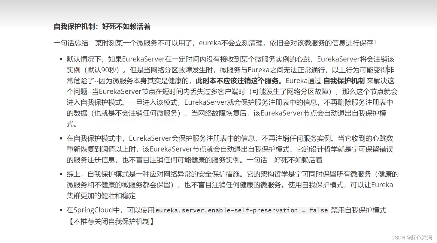 有些提供者再提供的时候断掉了连接,eureka会启动自我保护机制