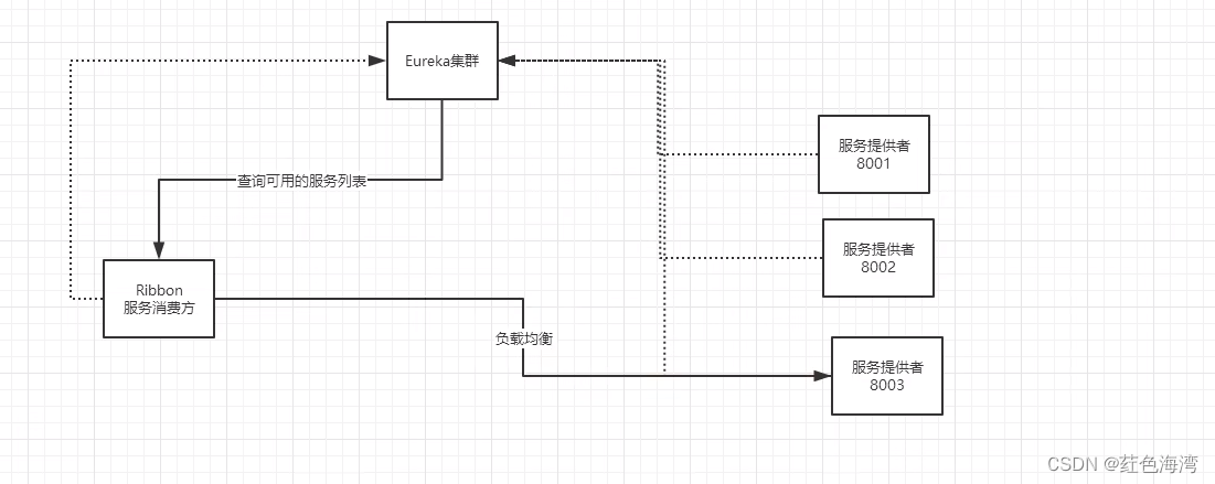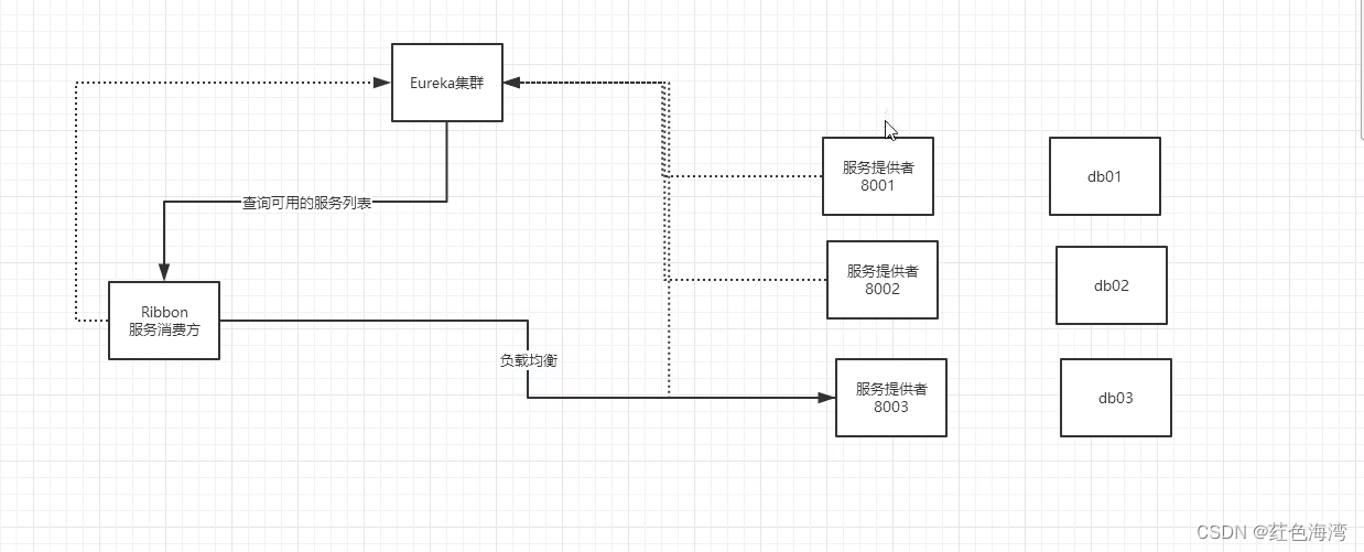 三个提供者注册在一个服务上,会在服务里,生成三个服务列表,Ribbon通过默认轮询的方式,轮流访问这三个服务!