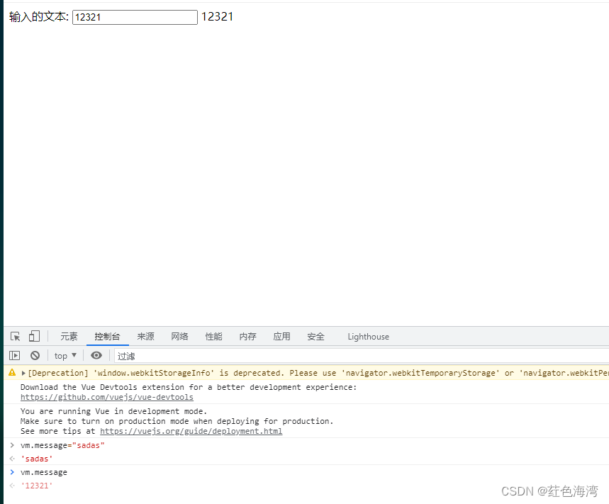 输入的文本: <input type="text" v-model="message"> {{message}}