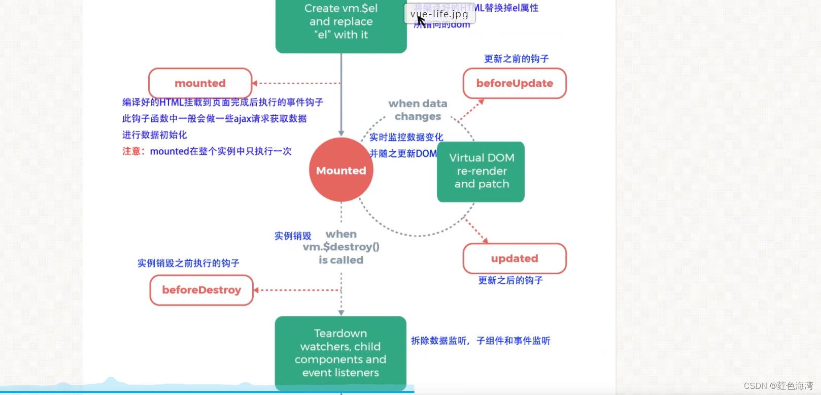 mounted(){//钩子函数,链式编程 ,ES6新特性