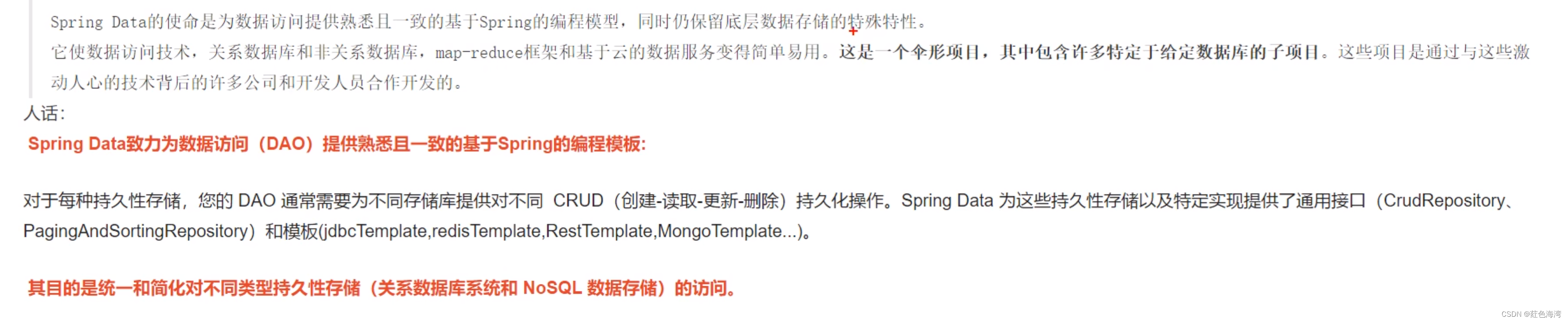 是因为对数据存储的框架太多了,全部都要学习成本比较高,SpringData对这些数据存储层做了一个统一,学习成本大大降低。