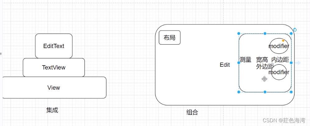 而现在的compose是组合关系。 进行了解耦。组件与组件之间没有关联,拿过来直接用就可以了,不会因为一个的改动去改变另一个。